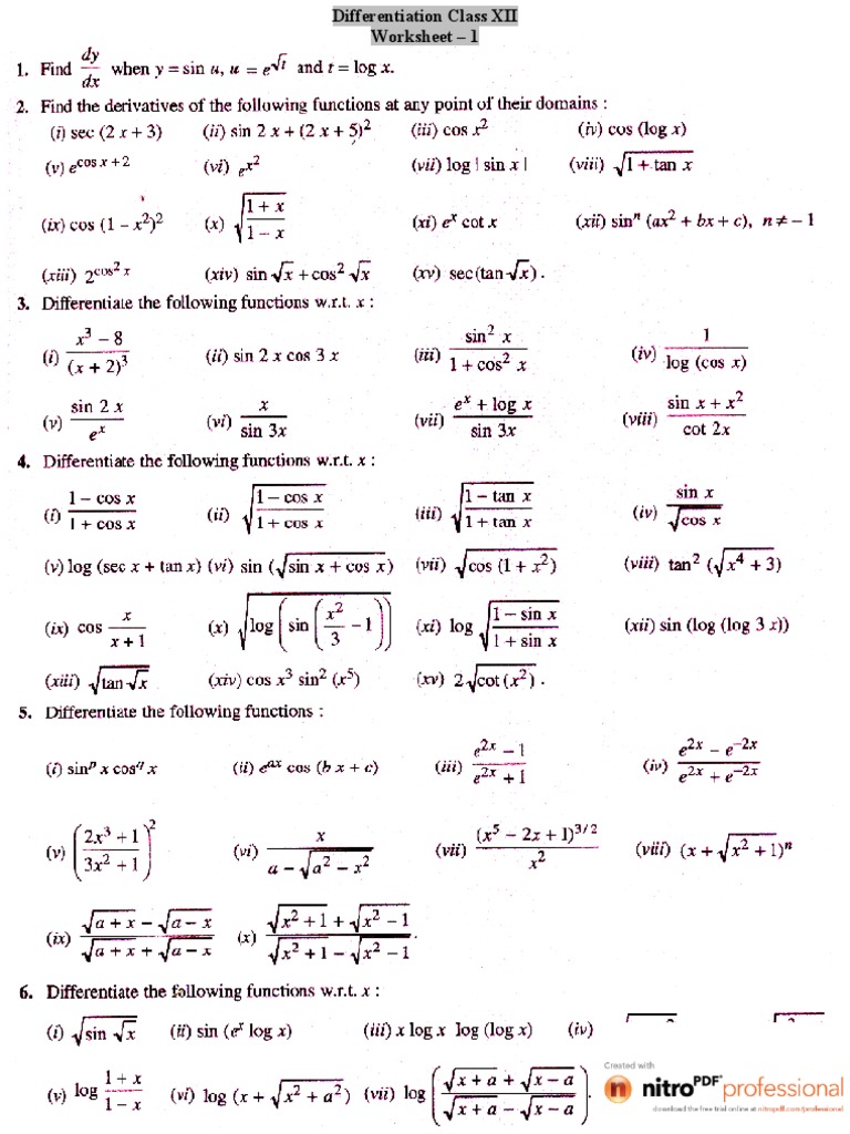 for "Derivative Worksheet Pdf : Chain Rule Derivative Worksheet Pdf - Worksheetpedia"